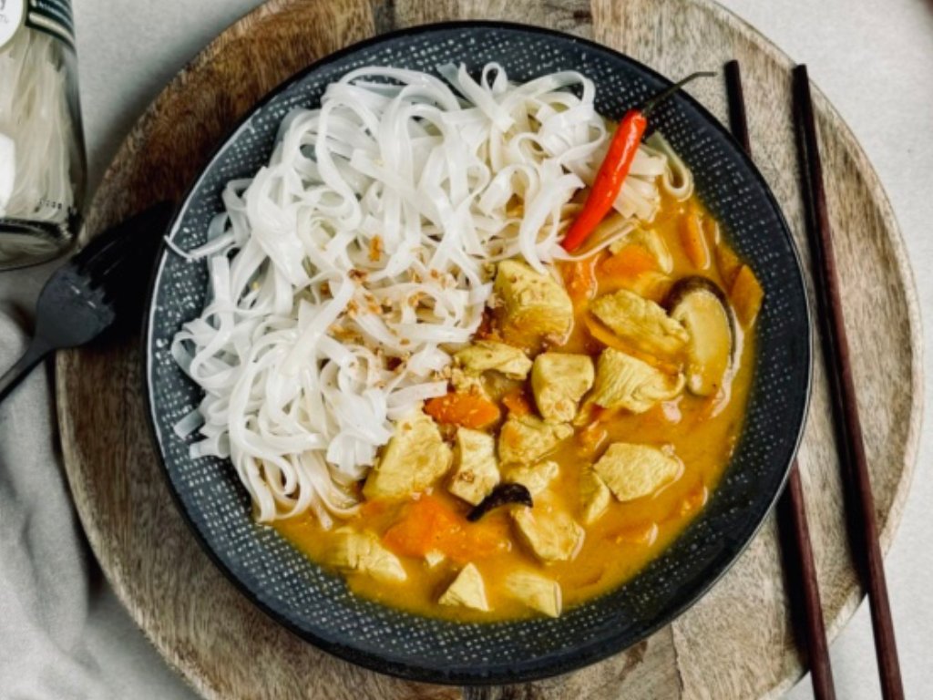 Ochutnajte Žlté kari s kuracím mäsom a rezancami – exotickú harmóniu chutí, pripravenú len pre vás. 😊